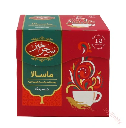 Složení: černý perský čaj, cukr, rostlinná s,etana, zázvor, skořice, hřebíček, pepř, fenykl, mušk oříšek, kořen pravého ženšenu